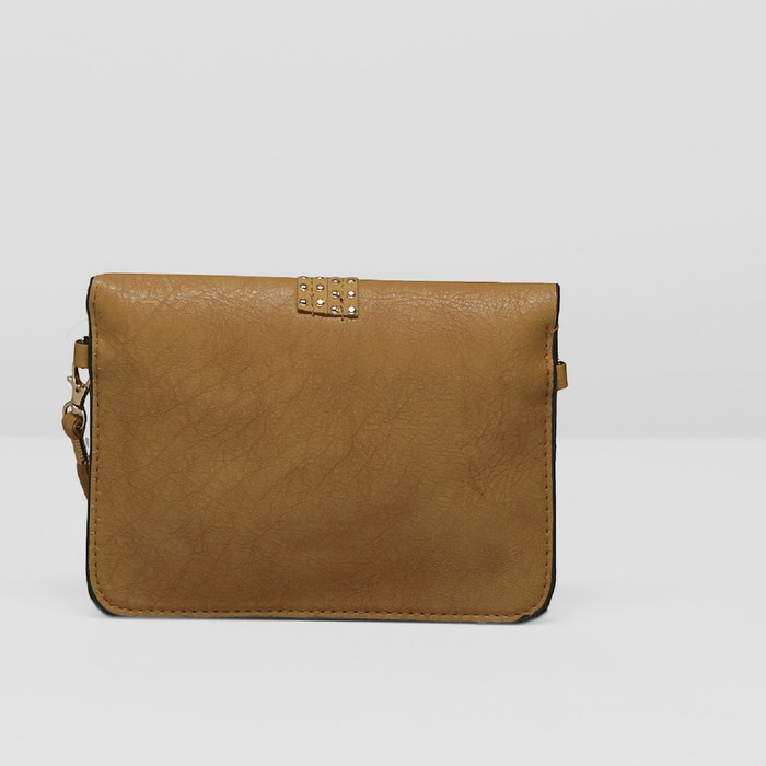 Сумка женская на клапане, 3 отдела, длинный ремень, цвет тёмно-бежевый