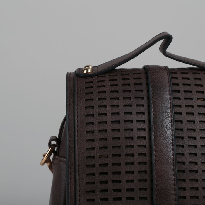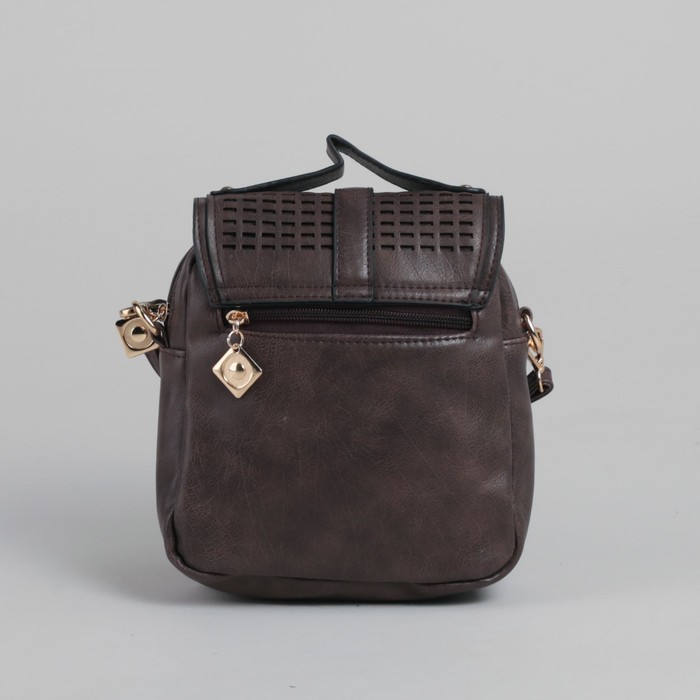 Сумка женская на клапане "Мира", 1 отдел, наружный карман, длинный ремень, коричневая