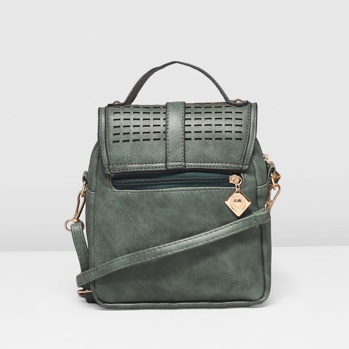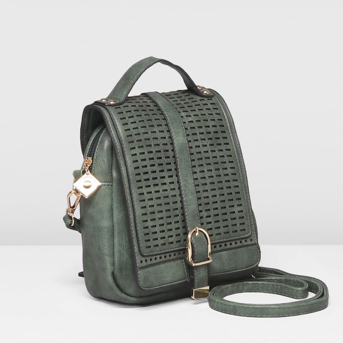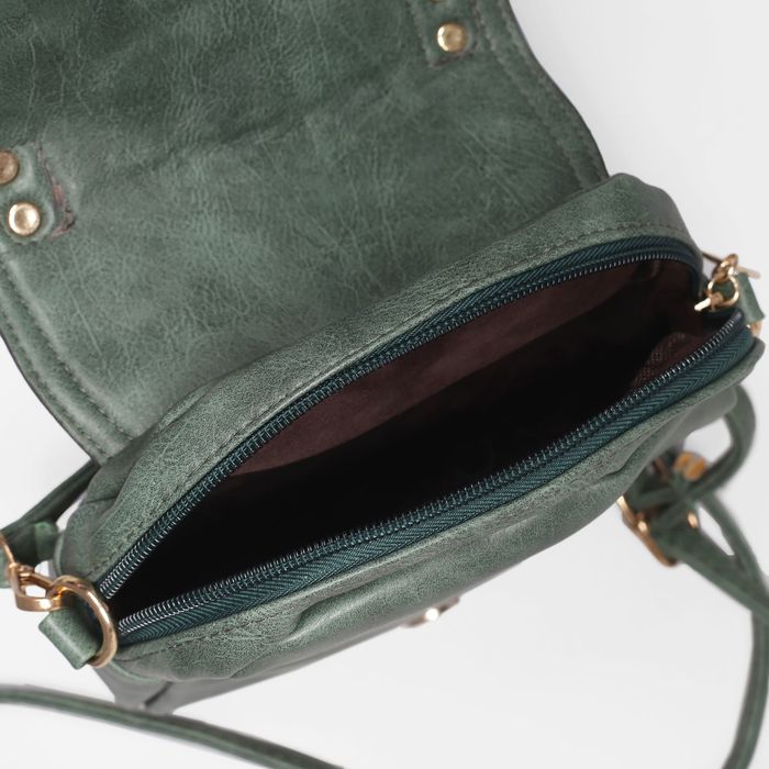 Сумка женская на клапане "Мира", 1 отдел, наружный карман, длинный ремень, зелёная