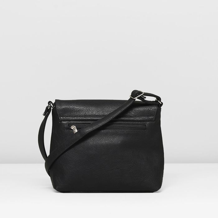 Сумка женская на клапане, молния, 1 отдел, длинный ремень, цвет чёрный