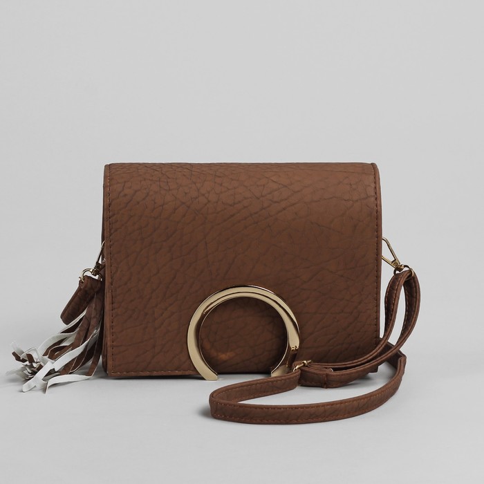 Сумка женская на клапане "Стиль", 1 отдел, длинный ремень, коричневая