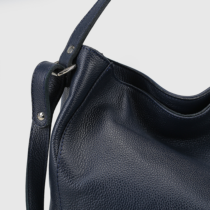 Сумка женская на кнопке, 1 отдел, наружный карман, длинный ремень, цвет тёмно-синий