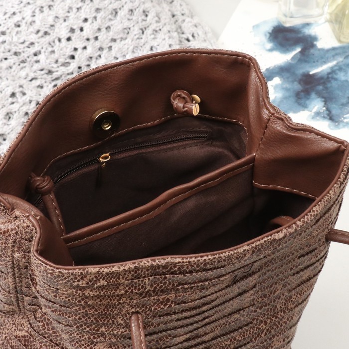Сумка женская на магните "Переплетение", 2 отдела, коричневая