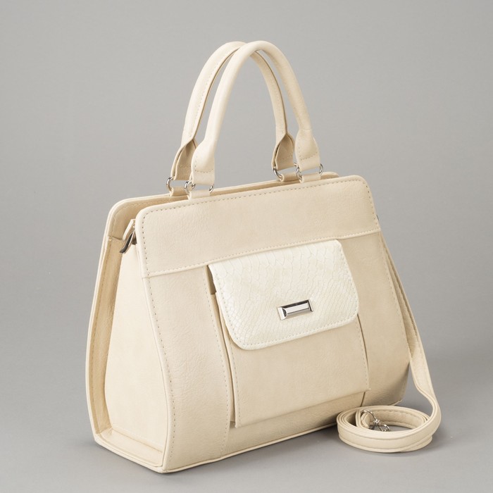 Сумка женская на молнии, 1 отдел, 1 наружный карман, бежевая