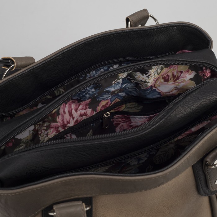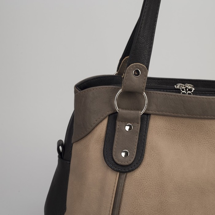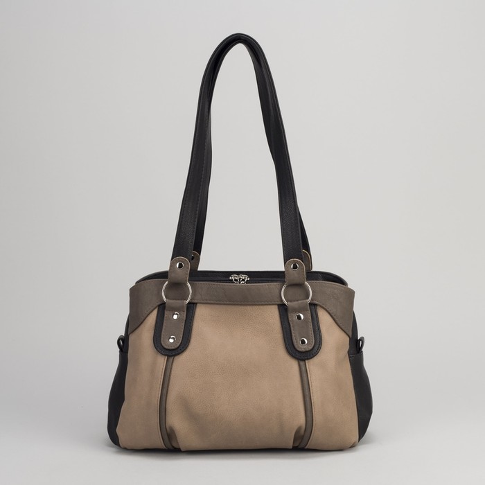 Сумка женская на молнии, 1 отдел, 1 наружный карман, чёрный/коричневый