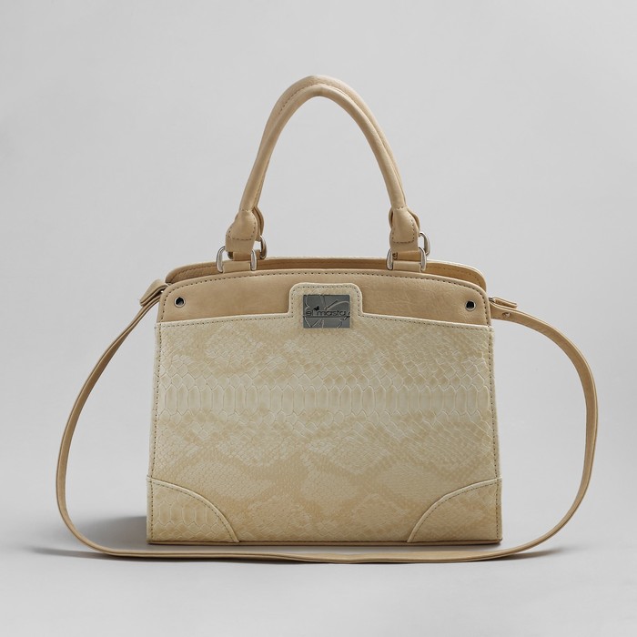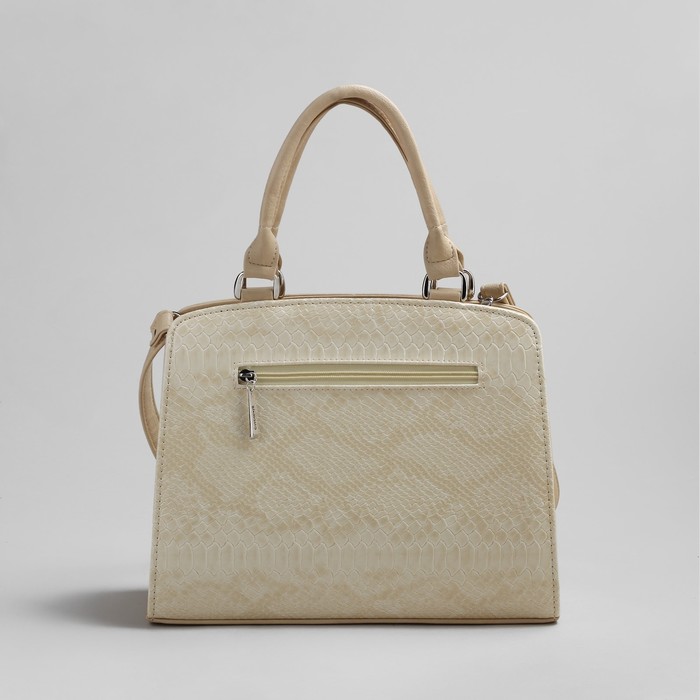 Сумка женская на молнии, 1 отдел, 1 наружный карман, длинный ремень, бежевая