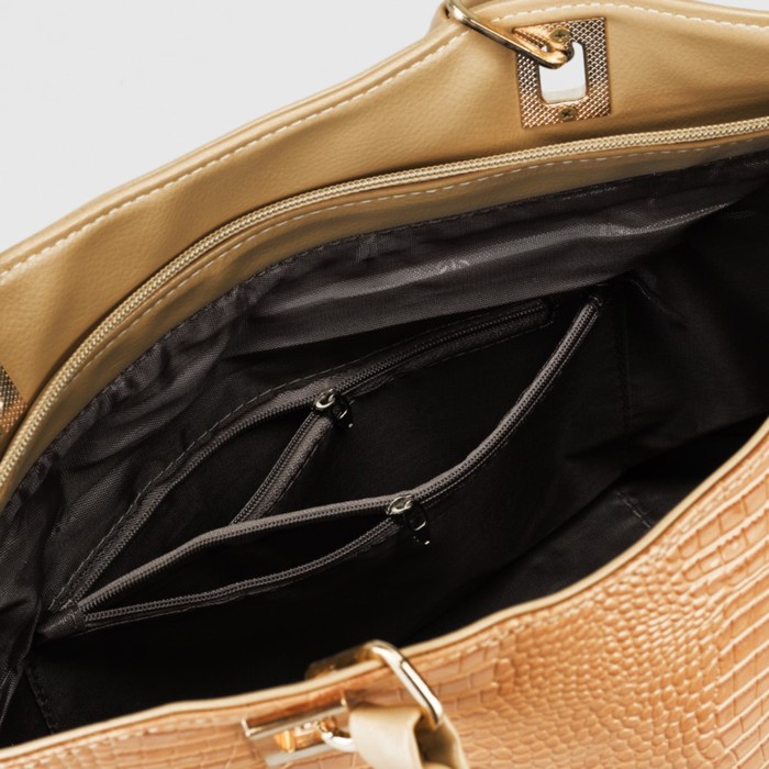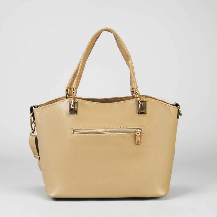 Сумка женская на молнии, 1 отдел, 1 наружный карман, длинный ремень, бежевая