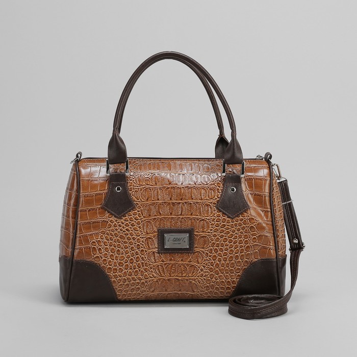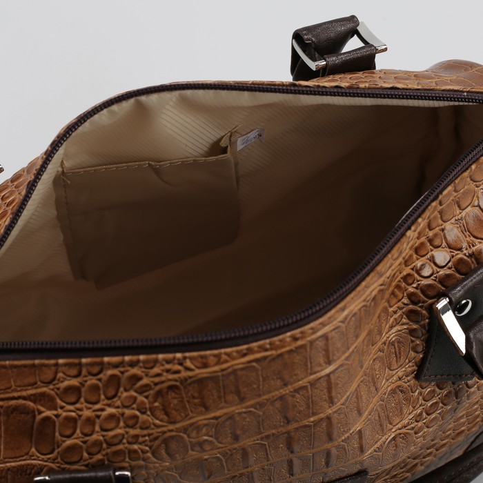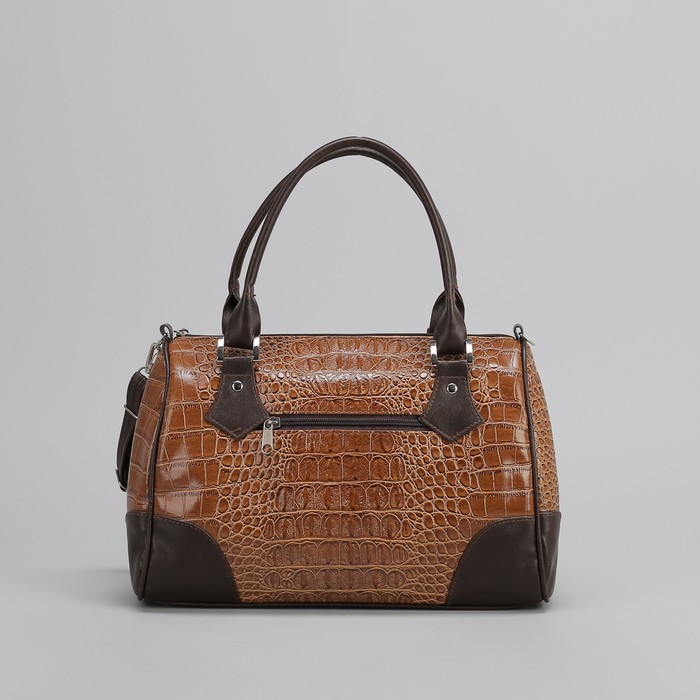 Сумка женская на молнии, 1 отдел, 1 наружный карман, длинный ремень, коричневый крокодил