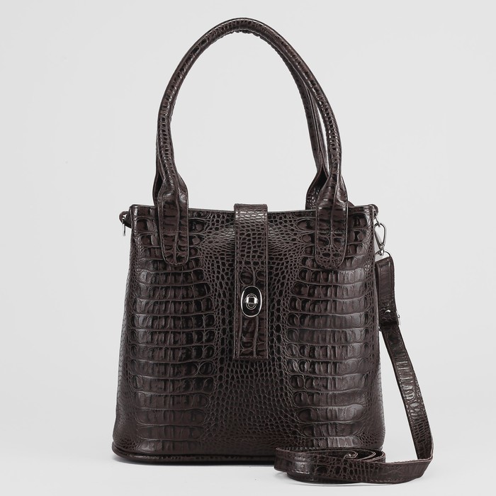 Сумка женская на молнии, 1 отдел, 1 наружный карман, тёмно-коричневая