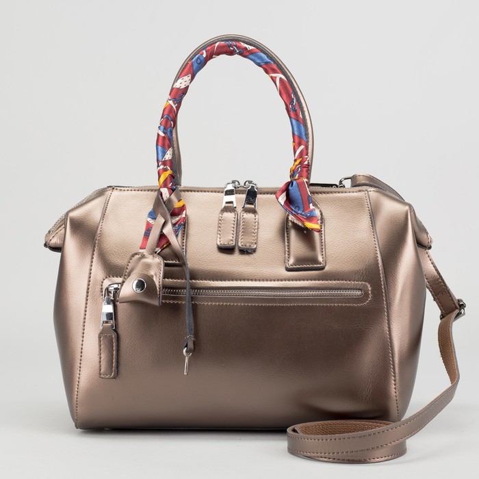 Сумка женская на молнии, 1 отдел, 2 наружных кармана, цвет бронзовый