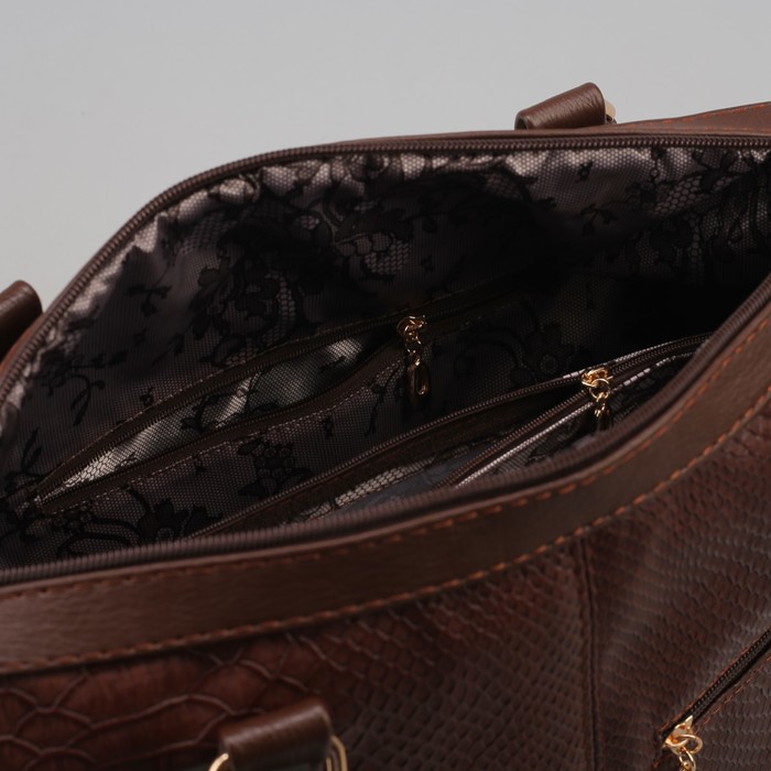 Сумка женская на молнии, 1 отдел, 2 наружных кармана, цвет коричневый