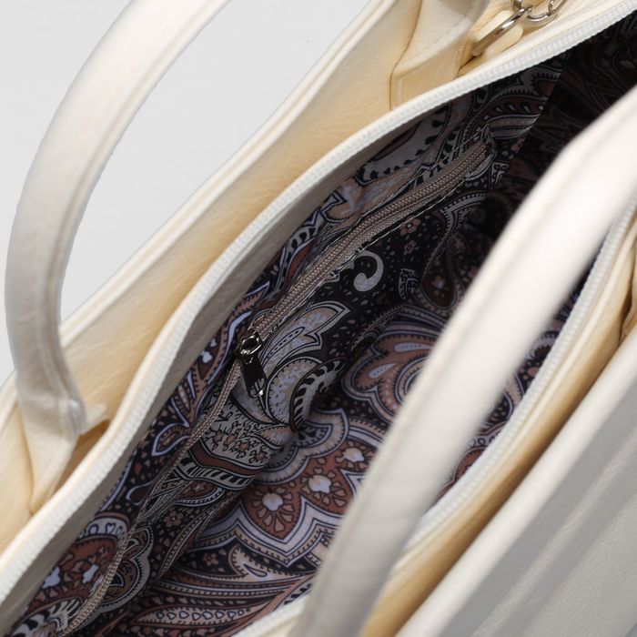 Сумка женская на молнии, 1 отдел, 2 наружных кармана, цвет молочный