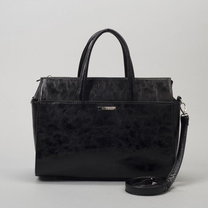 Сумка женская на молнии, 1 отдел, 2 наружных кармана, длинный ремень, цвет чёрный