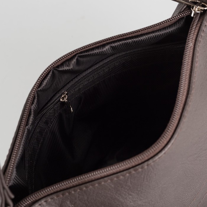 Сумка женская на молнии, 1 отдел, 2 наружных кармана, длинный ремень, цвет коричневый