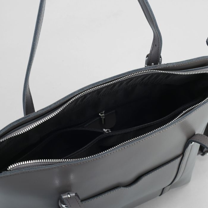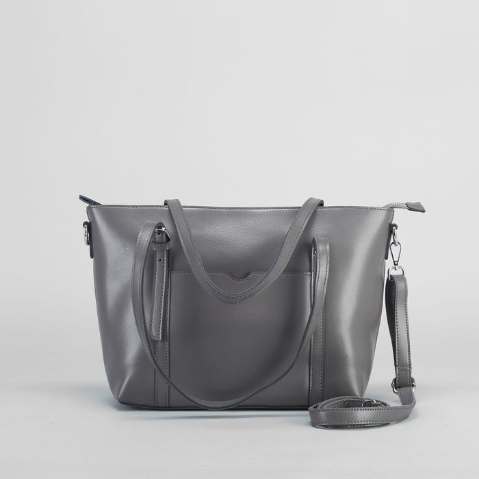 Сумка женская на молнии, 1 отдел, 2 наружных кармана, длинный ремень, цвет серый