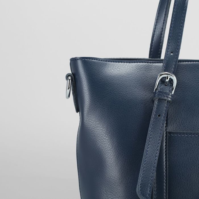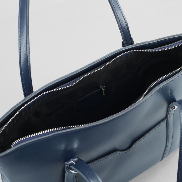 Сумка женская на молнии, 1 отдел, 2 наружных кармана, длинный ремень, цвет синий