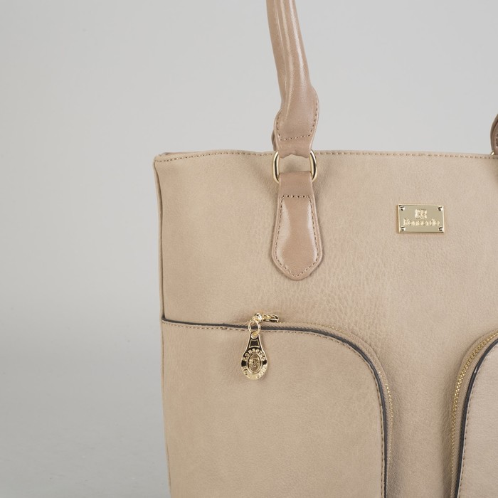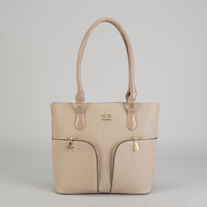 Сумка женская на молнии, 1 отдел, 3 наружных кармана, бежевая