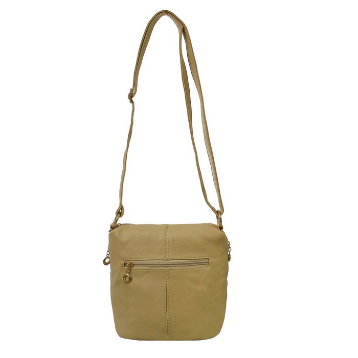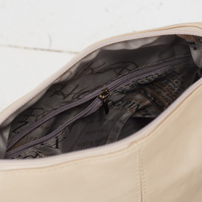 Сумка женская на молнии, 1 отдел, 3 наружных кармана, длинный ремень, бежевый