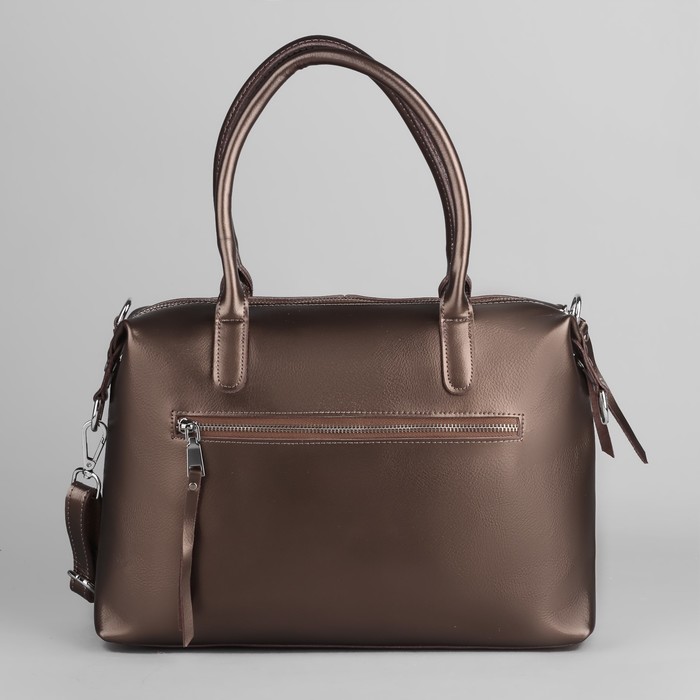 Сумка женская на молнии, 1 отдел, 3 наружных кармана, длинный ремень, цвет бронзовый