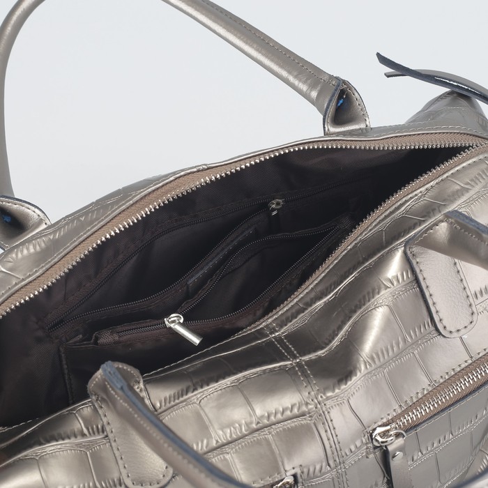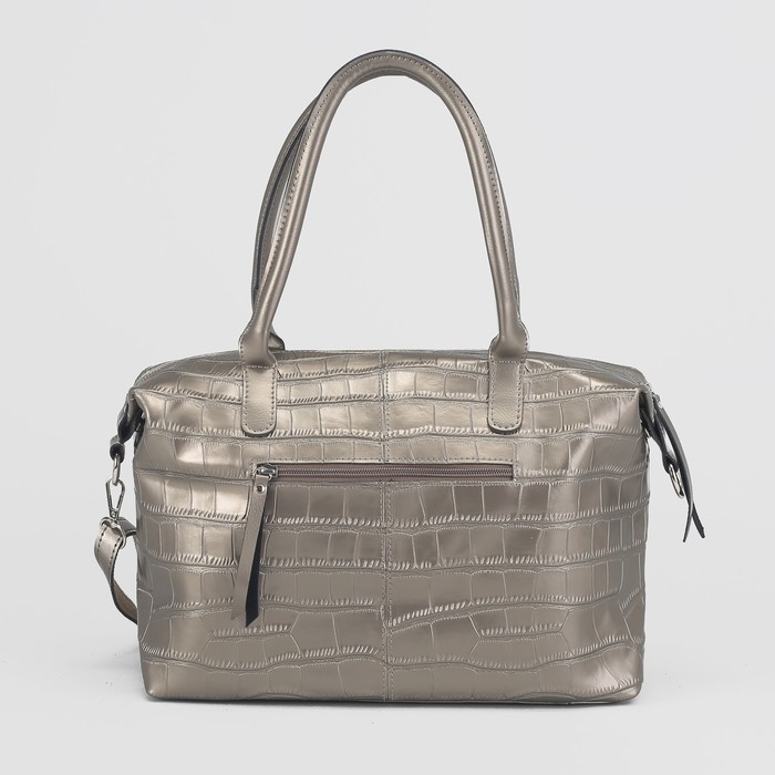 Сумка женская на молнии, 1 отдел, 3 наружных кармана, длинный ремень, цвет бронзовый