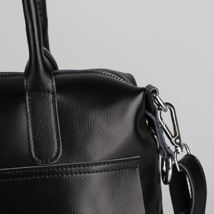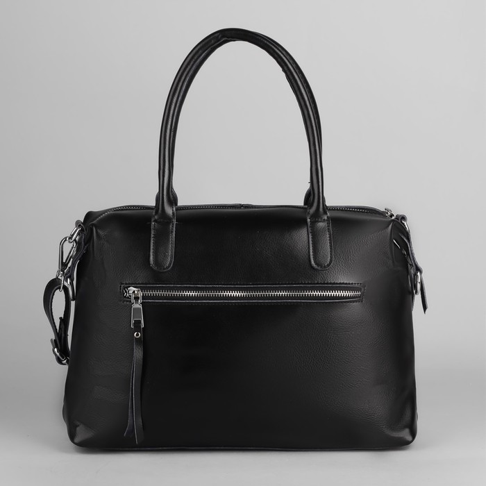 Сумка женская на молнии, 1 отдел, 3 наружных кармана, длинный ремень, цвет чёрный