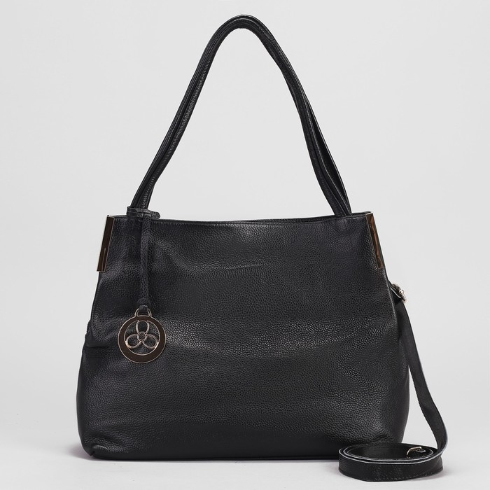 Сумка женская на молнии, 1 отдел, 3 наружных кармана, длинный ремень, цвет чёрный