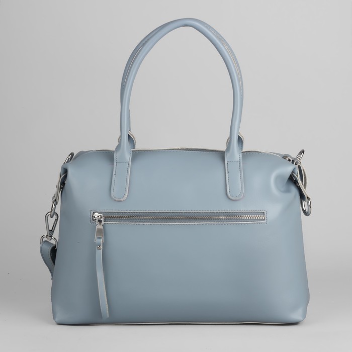 Сумка женская на молнии, 1 отдел, 3 наружных кармана, длинный ремень, цвет голубой