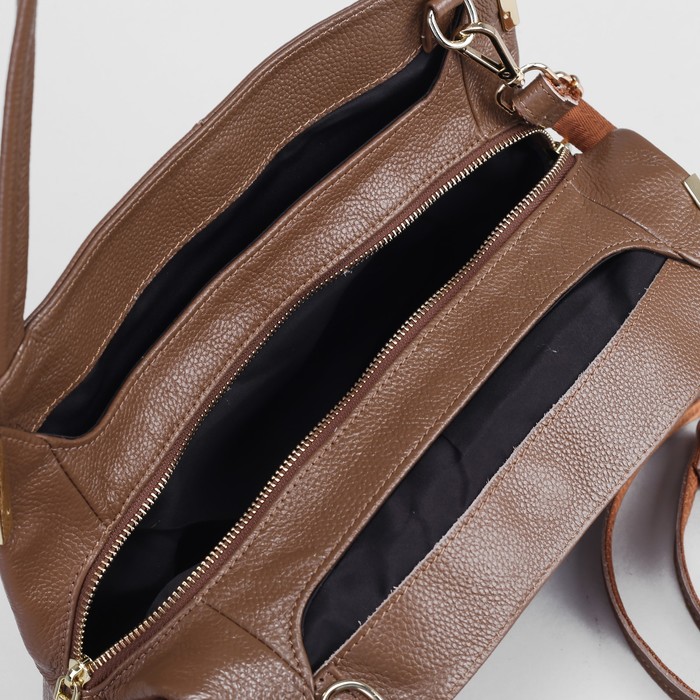 Сумка женская на молнии, 1 отдел, 3 наружных кармана, длинный ремень, цвет хаки