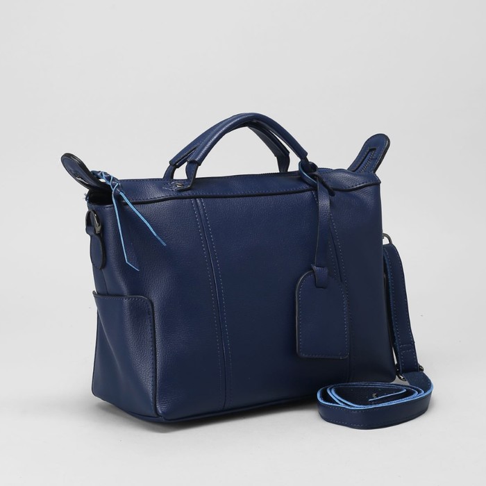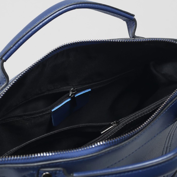 Сумка женская на молнии, 1 отдел, 3 наружных кармана, длинный ремень, цвет синий