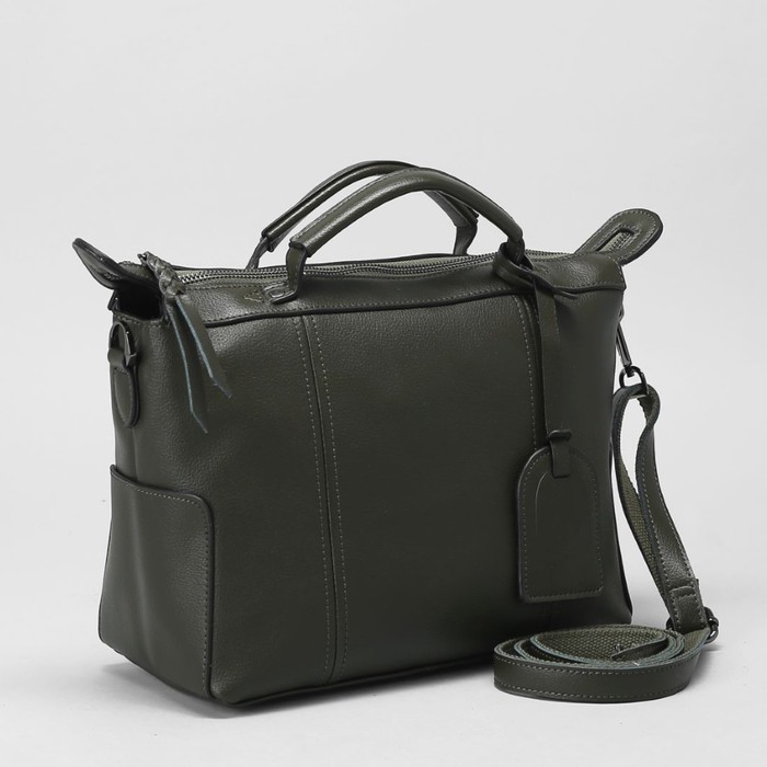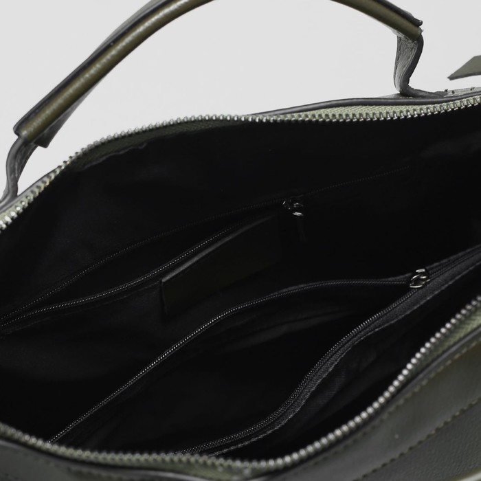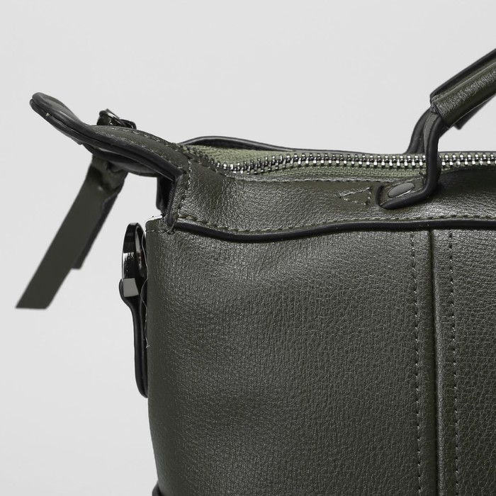 Сумка женская на молнии, 1 отдел, 3 наружных кармана, длинный ремень, цвет зелёный