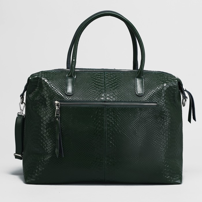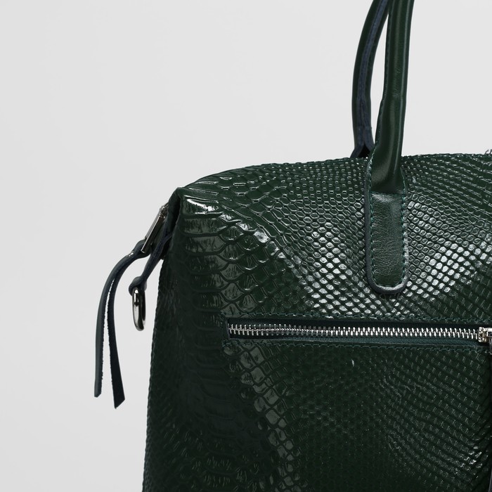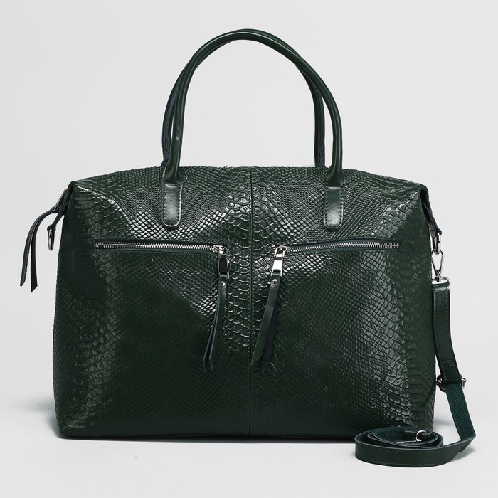 Сумка женская на молнии, 1 отдел, 3 наружных кармана, длинный ремень, цвет зелёный