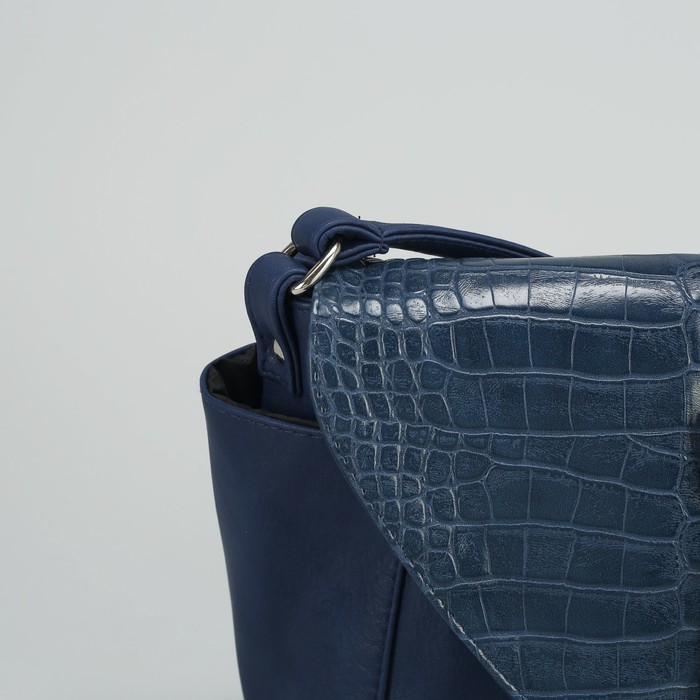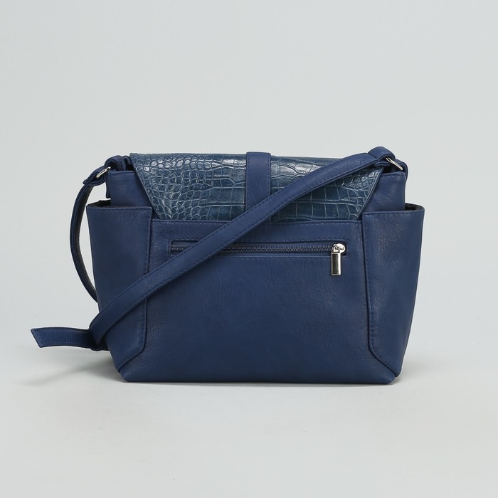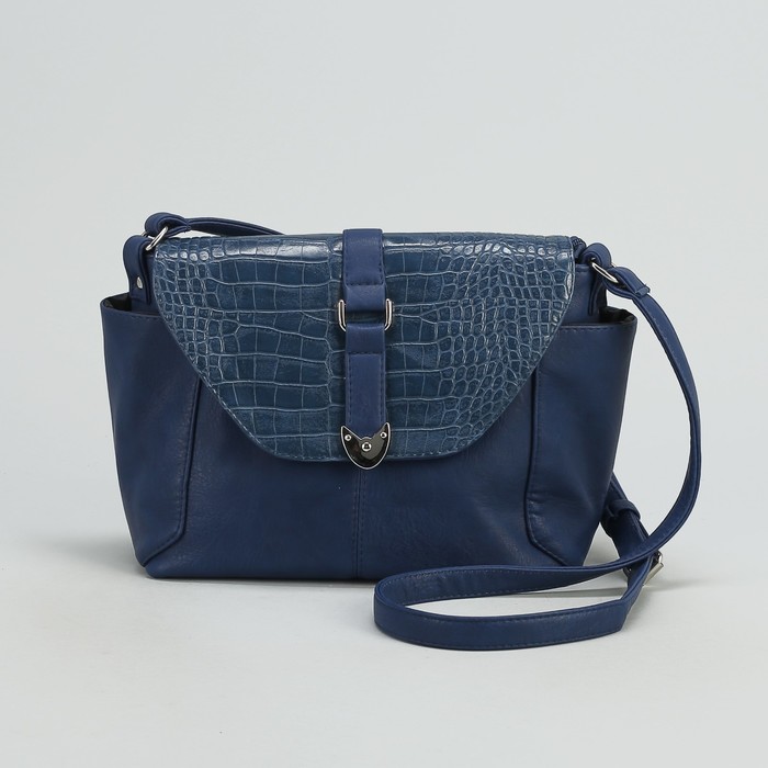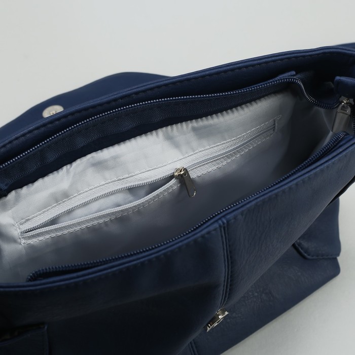 Сумка женская на молнии, 1 отдел, 3 наружных кармана, длинный ремень, синяя