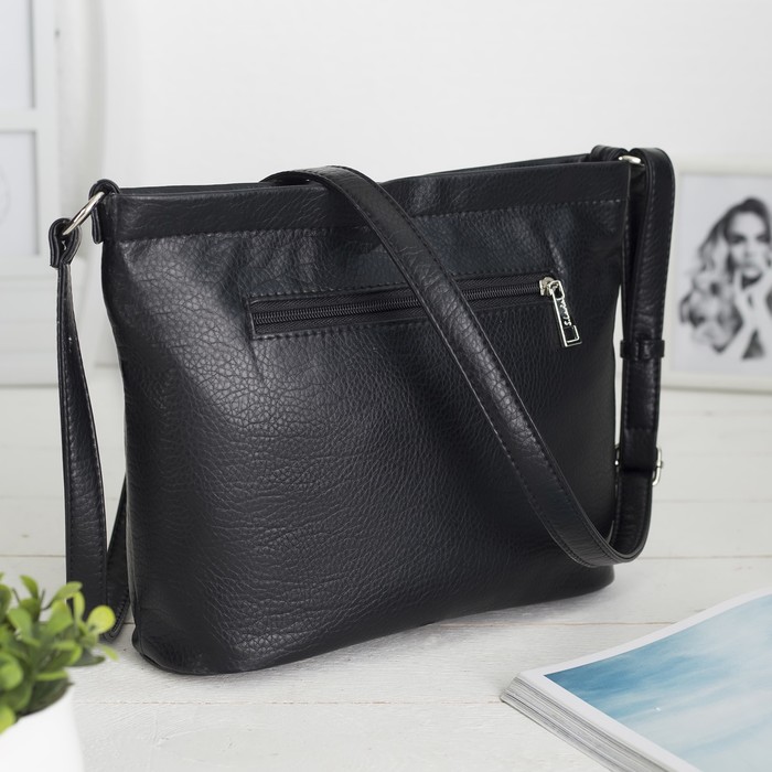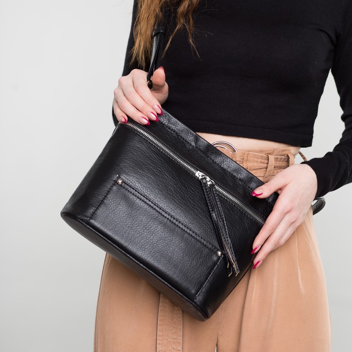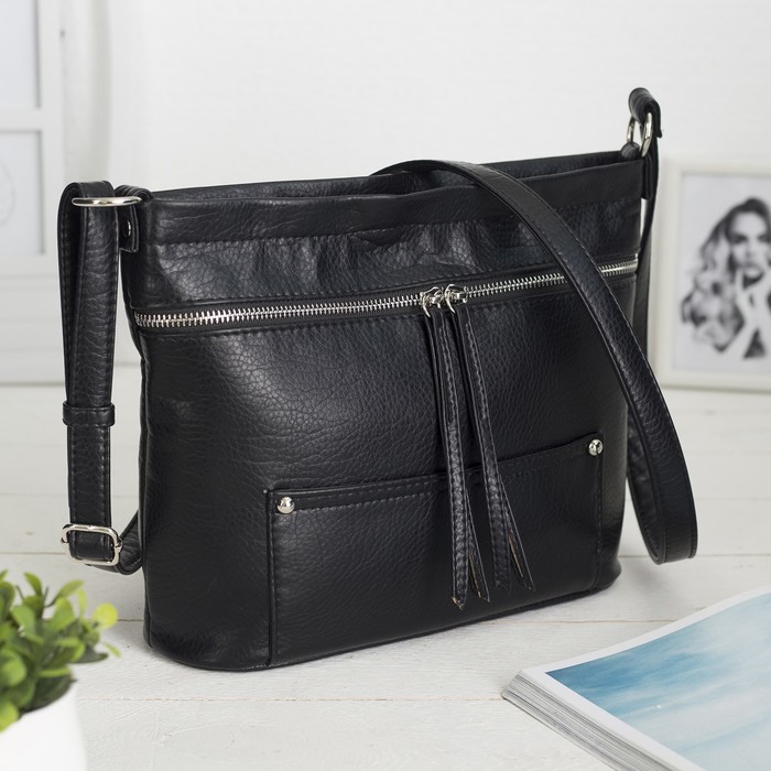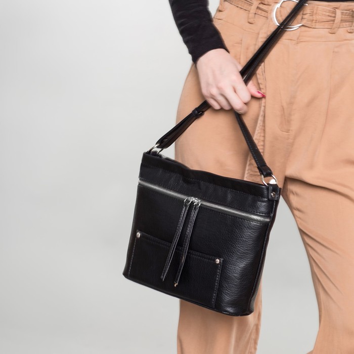 Сумка женская на молнии, 1 отдел, 3 наружных кармана, регулируемый ремень, цвет чёрный