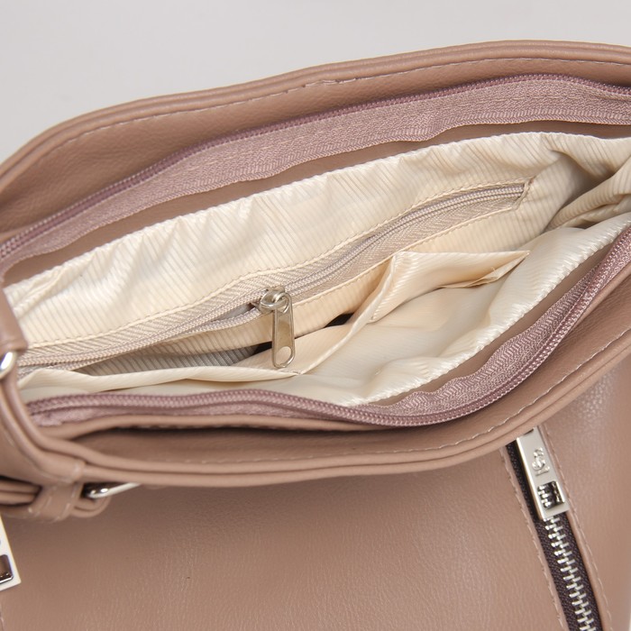 Сумка женская на молнии, 1 отдел, 4 наружных кармана, бежевая