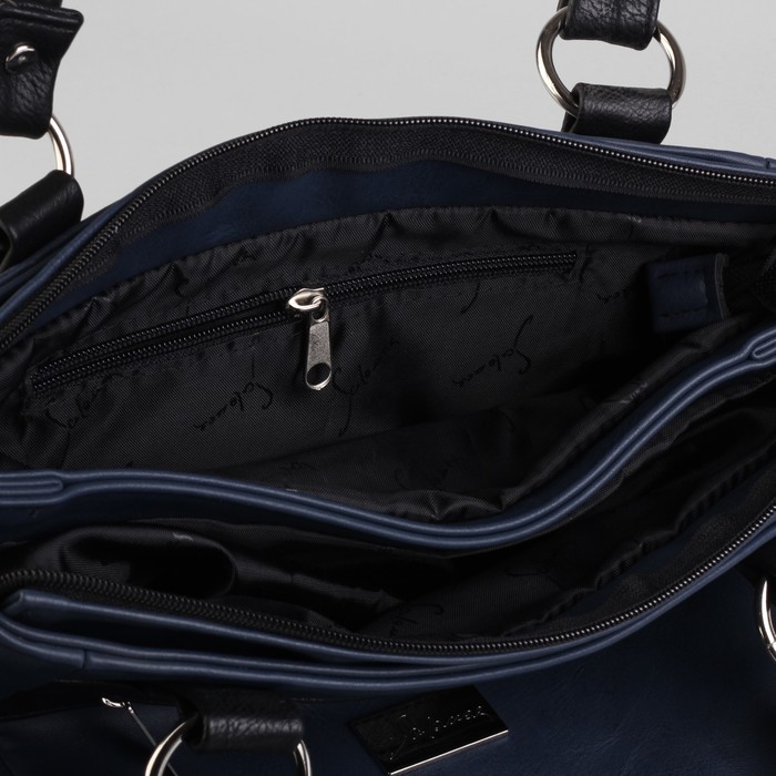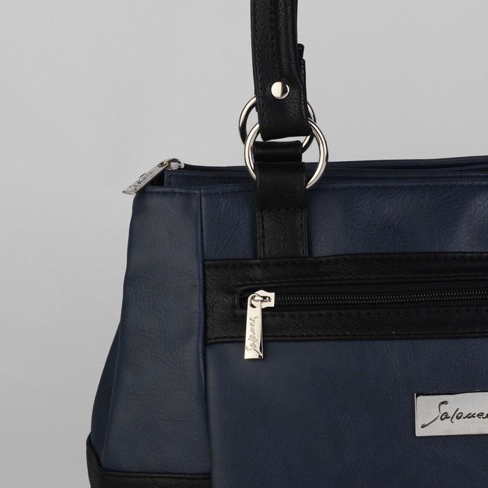 Сумка женская на молнии, 1 отдел, 4 наружных кармана, цвет синий/чёрный