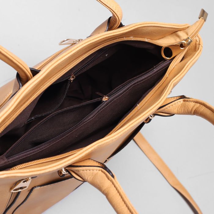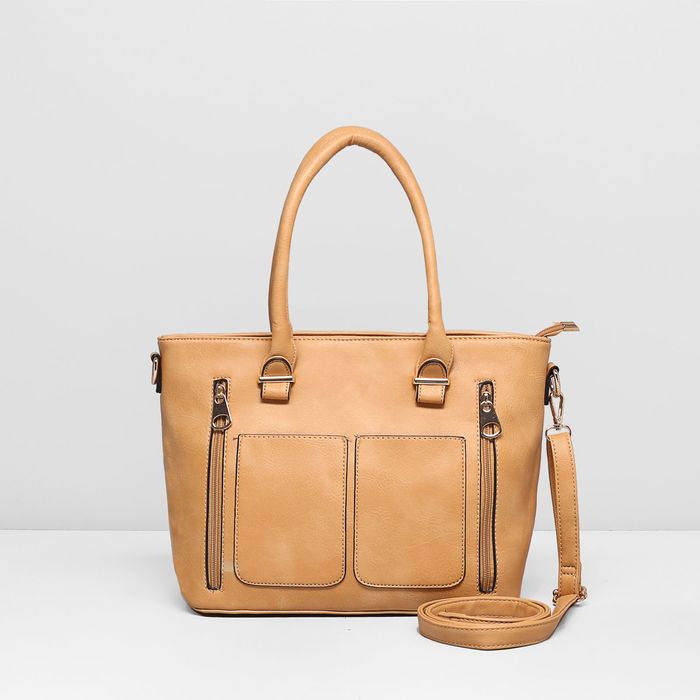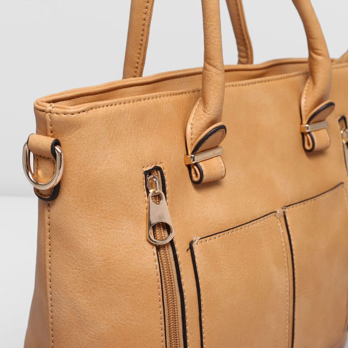 Сумка женская на молнии, 1 отдел, 4 наружных кармана, длинный ремень, цвет бежевый