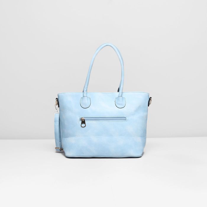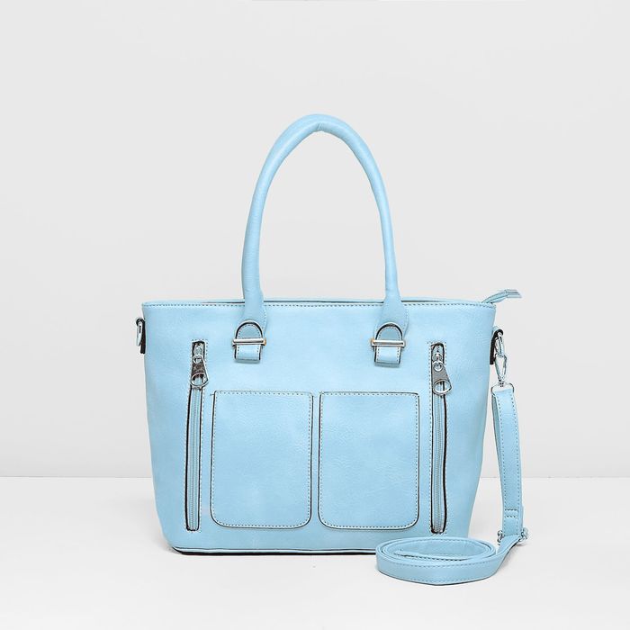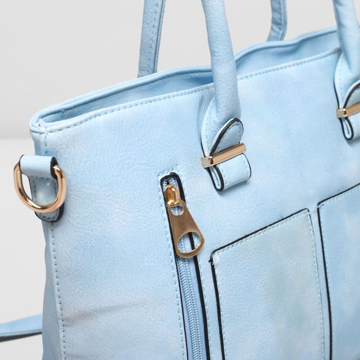 Сумка женская на молнии, 1 отдел, 4 наружных кармана, длинный ремень, цвет голубой