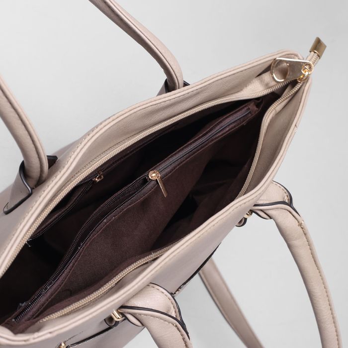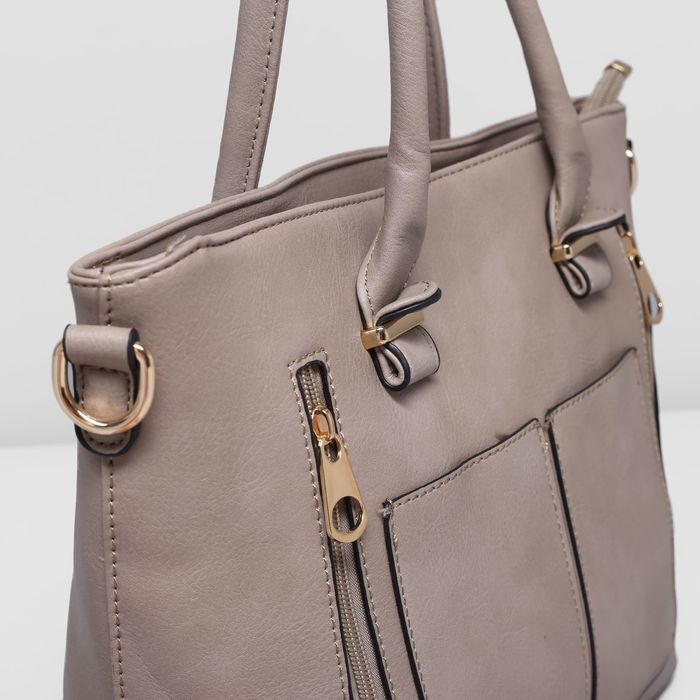 Сумка женская на молнии, 1 отдел, 4 наружных кармана, длинный ремень, цвет серо-бежевый