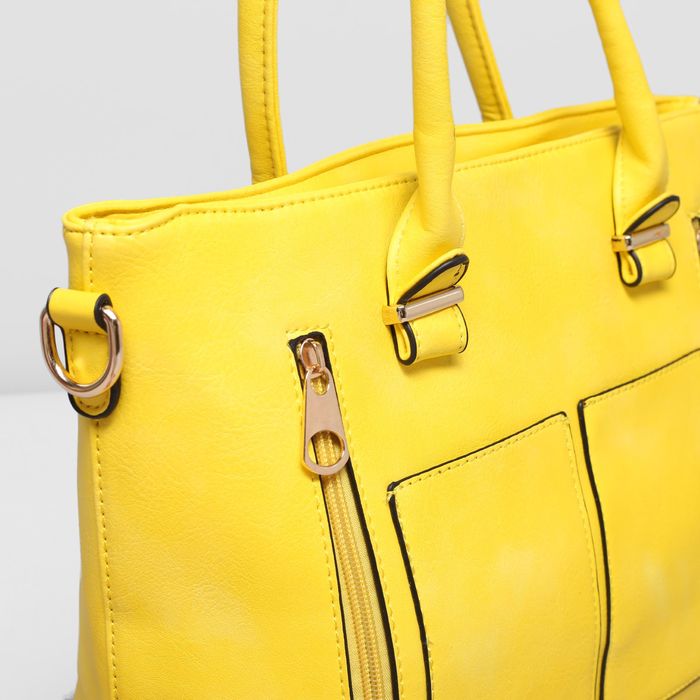 Сумка женская на молнии, 1 отдел, 4 наружных кармана, длинный ремень, цвет жёлтый