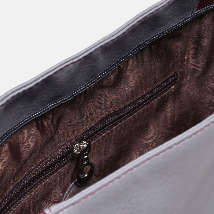 Сумка женская на молнии, 1 отдел, цвет бордовый/серый
