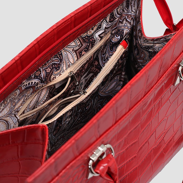 Сумка женская на молнии, 1 отдел, длинный ремень, цвет красный