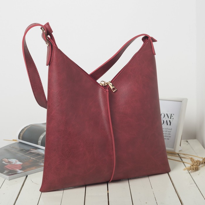 Сумка женская на молнии, 1 отдел, длинный ремень, цвет красный