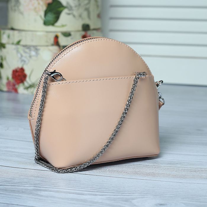 Сумка женская на молнии, 1 отдел, наружный карман, цепочка, цвет пудра