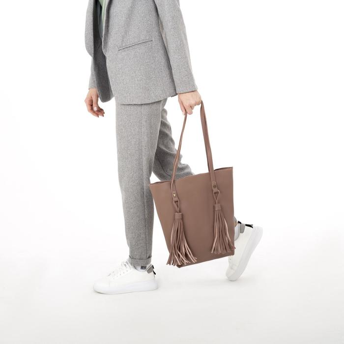Сумка женская на молнии, 1 отдел, наружный карман, цвет бежевый