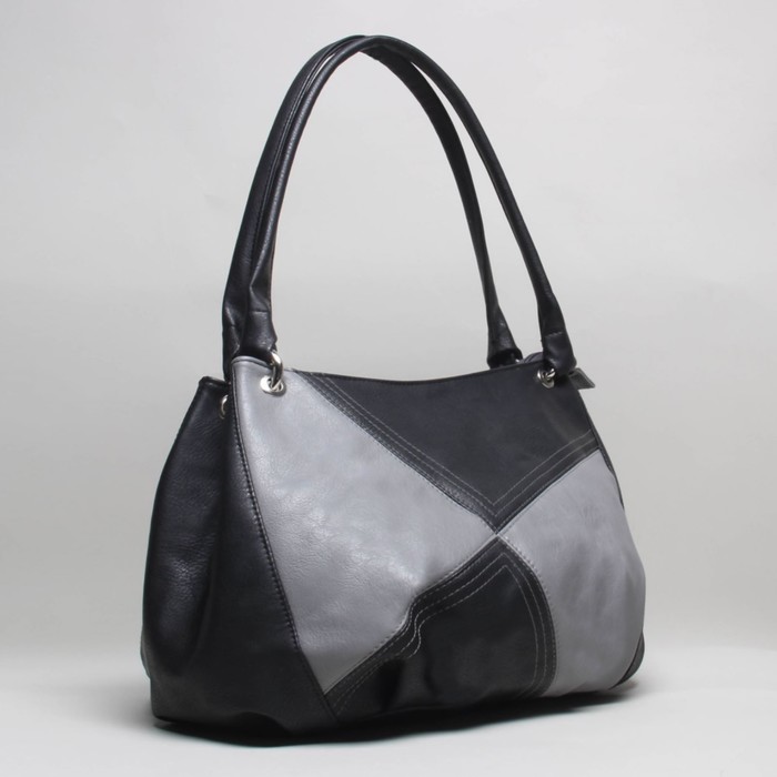 Сумка женская на молнии, 1 отдел, наружный карман, цвет чёрный/серый
