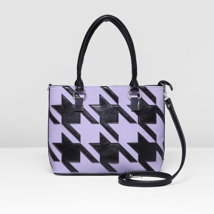Сумка женская на молнии, 1 отдел, наружный карман, цвет чёрный/сиреневый
