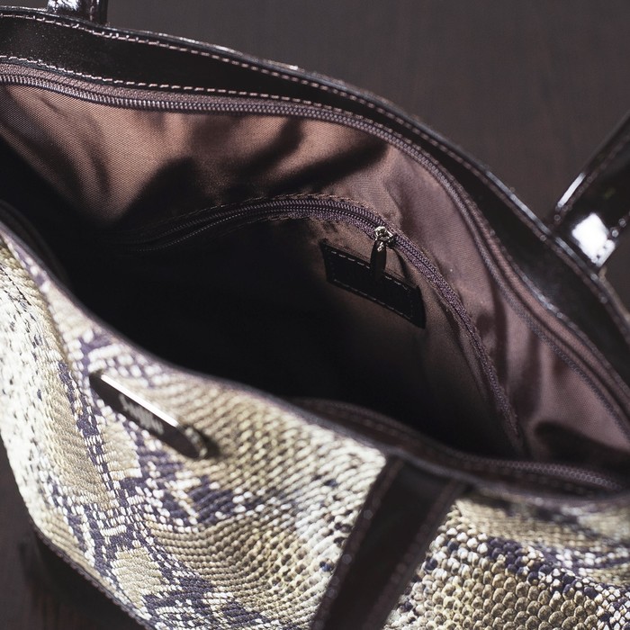 Сумка женская на молнии, 1 отдел, наружный карман, цвет изумрудный питон/коричневый шик