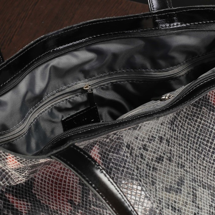 Сумка женская на молнии, 1 отдел, наружный карман, цвет серый питон/чёрный гладкий шик