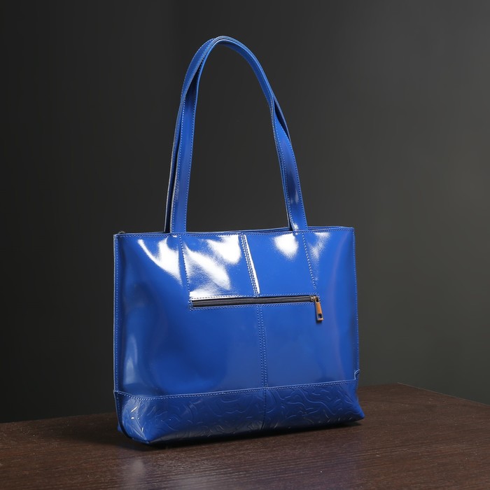 Сумка женская на молнии, 1 отдел, наружный карман, цвет синий гладкий шик/пионы шик