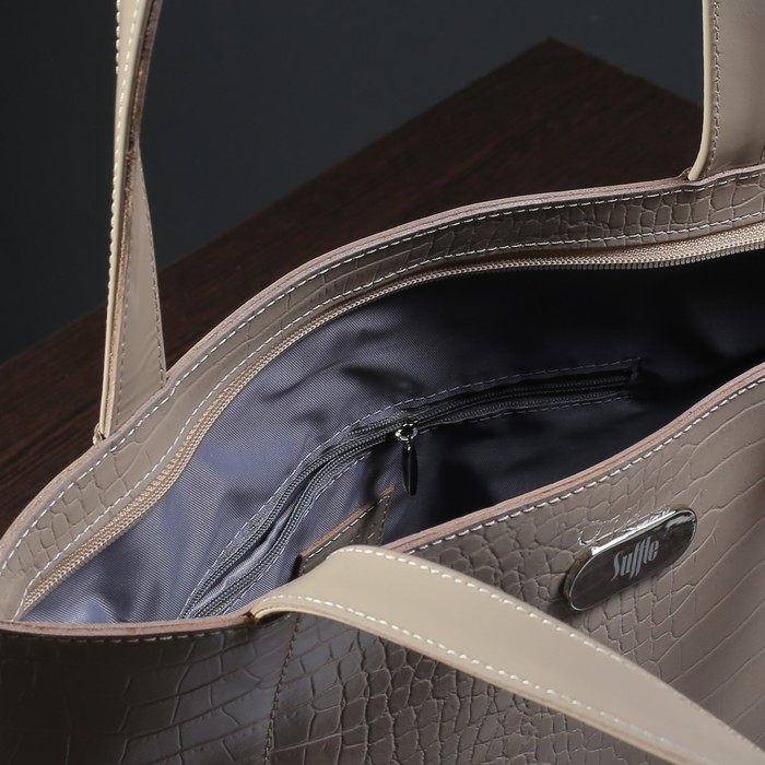 Сумка женская на молнии, 1 отдел, наружный карман, цвет светлый капучино/кайман-шик